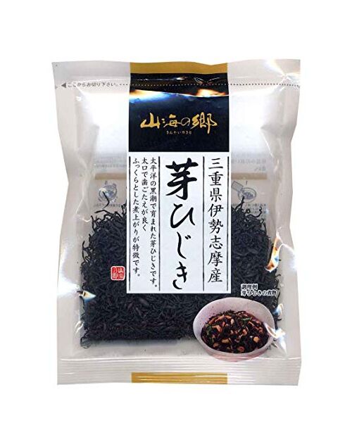 Mie Prefecture certified triple brand product using only Hijiki grown in the rough waves of Ise -Shima. The raw materials used for Ise Shima's buds are characterized by the long and well -shaped leaf muscle, which is a high -quality raw material. Hijiki, which is stuck, goes well with plenty of boiled soup.
